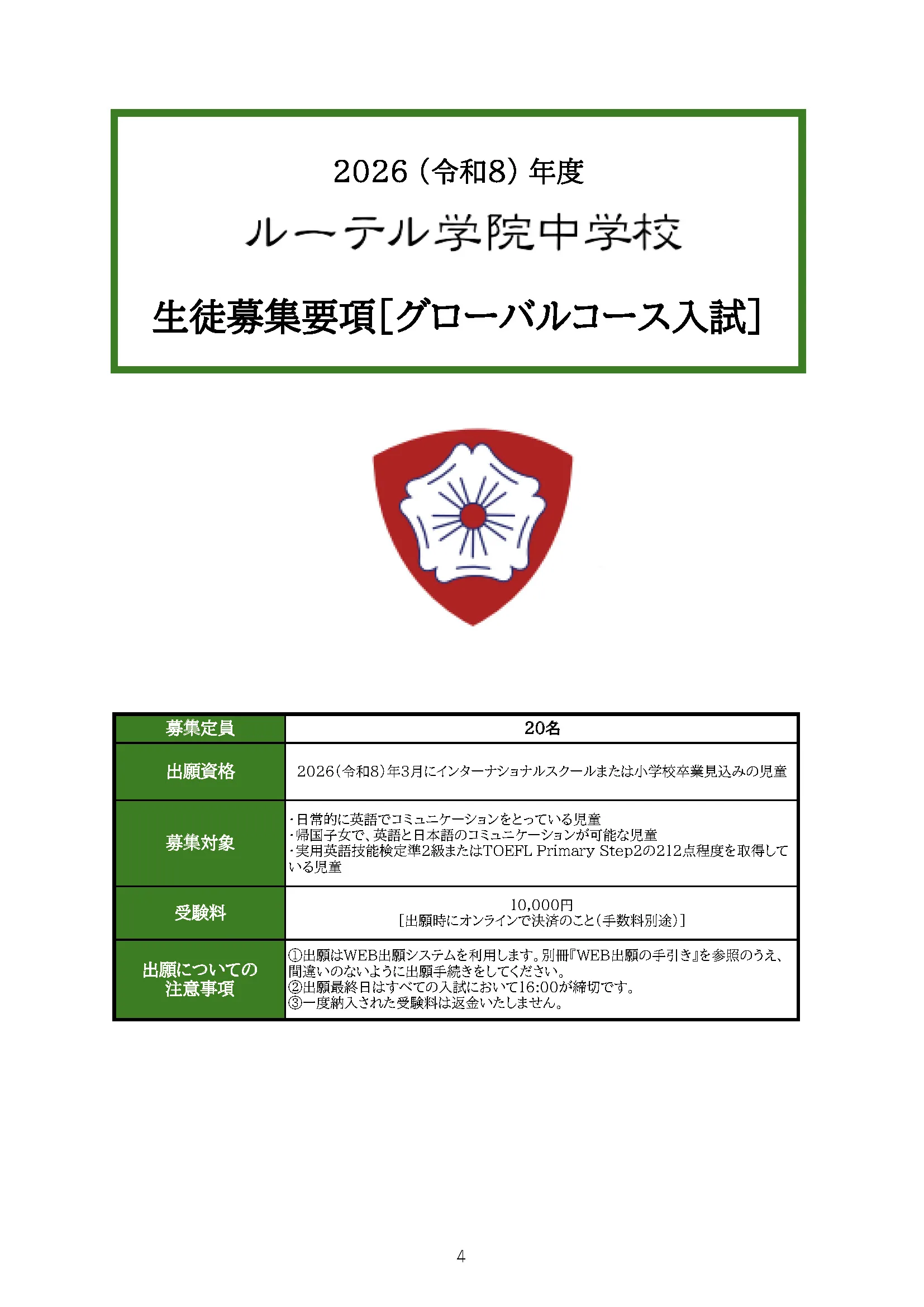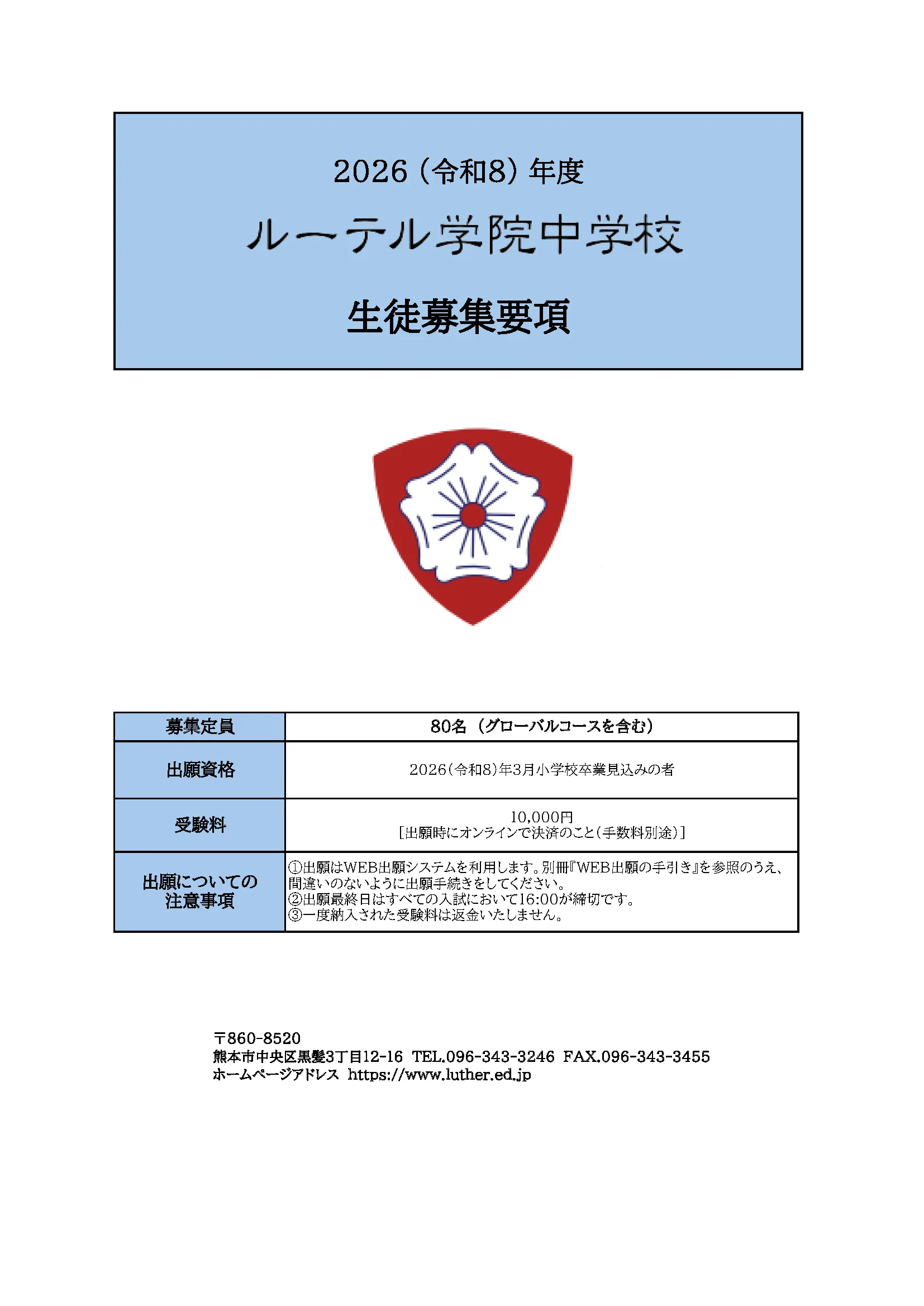 Information 生徒募集要項 ルーテル学院中学校 募集要項PDFダウンロードはこちら Information入試・入学情報 入試の種類 制度について 入試情報 生徒募集要項 入学金・学費について 転入試 入試データ(PDF) インターネット出願 制服について 施設紹介・寮 よくある質問 進路実績 ルーテル学院は生徒のやりたいことを見つける環境を整え、一緒に取り組むことで生徒・保護者・学校の「良かった」を作っています。