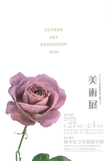 News お知らせ 高等学校からの最新情報 カテゴリー ALL 学校行事 入試入学情報 クラブ活動 在学生・保護者 その他 2026.01.27 その他 ルーテル学院高等学校「芸術コース美術展」開催 展示期間 2026年1月27日(火)~2月1日(日) 平 日 9:30~18:30(入館は18:00まで) 土 日 9:30~17:15(入館は16:45まで) 展示場所 熊本県立美術館 分館 ●入場無料 芸術コースの1年生から3年生、全員の美術作品を展示しています。内容は油絵、デザイン色彩構成、木炭デッサン、鉛筆デッサン、模刻など、授業で制作したものを中心に約180点の作品を展示しています。 みなさまのご来場をお待ちしております。 展示作業の様子です